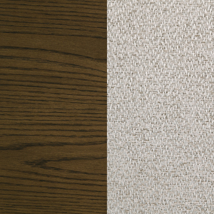 This transitional dining set combines timeless design with elegant details for a versatile and functional dining space. Featuring a round dining table with a rich brown finish, angular legs, and a convenient open shelf, it provides both style and practicality. Paired with matching chairs upholstered in soft light tan fabric, each chair showcases a wrapped backrest with unique brown tie accents and foam-padded seats for comfort. Crafted from durable Asian hardwood, engineered wood, and fabric, this set is perfect for everyday dining and special occasions.