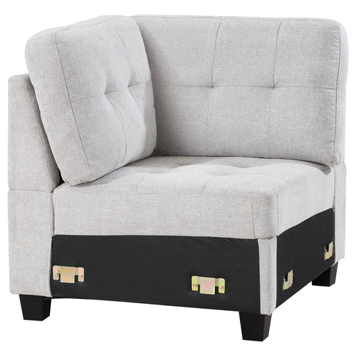 Customize a sectional that suits your space with a modern armless corner chair. In soft beige upholstery, it's the perfect centerpiece for your Geo...