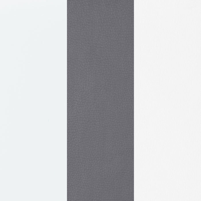 Give your entertainment area an ultra-modern feel with this five-piece dining table set. A spacious rectangular table with a gleaming high gloss white finish is supported by three stainless steel supports in a lustrous chrome finish that rest on a flush base that mirrors the top. With a pedestal-like design, the dining table invites each of the four cantilever style dining chairs to slide up for meals and conversations. Sit back and rest in the upholstered seats, wrapped in a two-tone gray and white leatherette that accents the contoured shapes. Mounted on a polished chrome metal base, the cantilever design chairs also offer an open, airy feel that showcases the table.