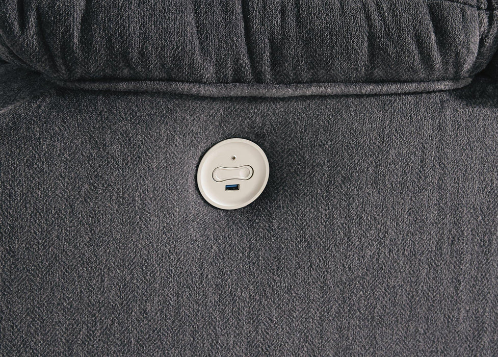 If highly contemporary looks and a heavenly feel sit well with you, rest your eyes on this power rocker recliner. Padded velvet upholstery has a plush high pile that's so soft to the touch. Jumbo contrast stitching adds fashion-forward flair, while radius cut arm frame incorporates cool, curvaceous interest. At your fingertips: one-touch power control with a zero-draw USB plug-in that’s not only convenient but also energy efficient. When it comes to high style at a down-to-earth price, this power recliner really brings it home.