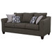 Gracefully blending timeless design and comfort, this sofa anchors any living space with a clean silhouette and flared arms. Plush foam cushions provide supportive comfort, while tailored upholstery adds a refined touch. Its inviting form and accent pillows create an effortlessly balanced look suited for casual and modern interiors alike. A perfect centerpiece for conversation or relaxation, this sofa elevates comfort with enduring style._x005F_x000D_ Key Features: • Flared-arm sofa wrapped in smooth sand-tone upholstery for a soft look • Polyester fabric and plush foam cushions ensure enduring comfort • Rounded armrests enhance both style and relaxation appeal • Accent pillows deliver pattern contrast for a balanced composition • Tapered espresso legs ground the design with visual definition • Durable tailoring keeps the sofa refined and contemporary
