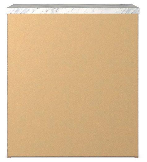 Cool, clean and casually modern. This nightstand’s light natural finish and faux Calcutta marble top set the tone for your calming sanctuary. Large linear pulls add dimension and authenticity. Two smooth-gliding drawers neatly accommodate your bedside needs.