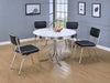 Bring vintage charm into your dining space with this retro-style oval dining table. Featuring a smooth white top with a chrome-rimmed edge, it channels classic mid-century diner vibes. The curvaceous chrome metal legs add stylish stability, while the easy-to-clean surface ensures practical everyday use. Perfect for creating a nostalgic, fun atmosphere in kitchens or casual dining areas. Key Features: • Retro-inspired oval dining table with iconic mid-century styling • Smooth white tabletop with chrome-rimmed apron for vintage flair • Curved electroplated chrome legs provide both support and retro character • Durable engineered wood top with easy-care paper laminate finish • Perfect for casual dining rooms, kitchen nooks, or 1950s-style interiors • Pairs effortlessly with chrome-framed chairs in red, black, or white tones