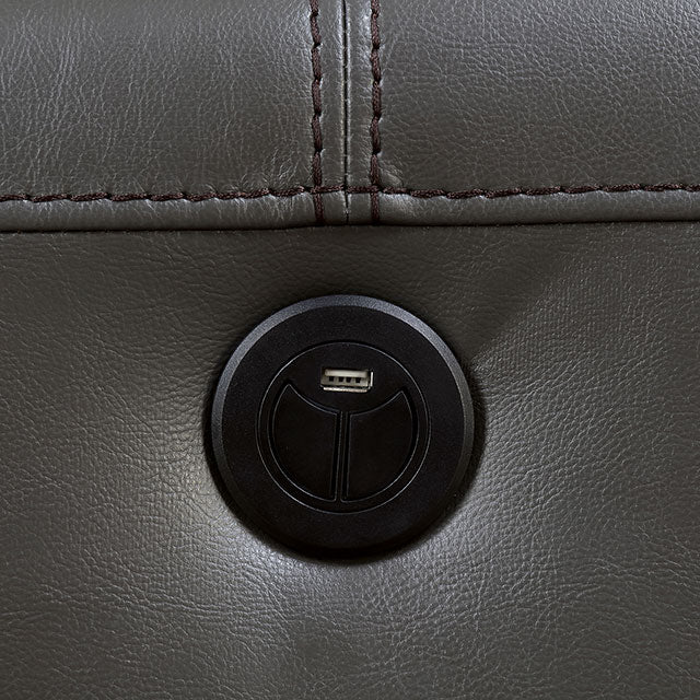 Revolutionize your living space with this reclining sofa set. The smooth leatherette is uniquely crafted with leather gel, bringing breathability and cooling coziness to the leather-like texture. Foam cushions fill the sofa set with plush comfort and the button-activated recliner sets the pose for endless relaxation. Use the convenient USB plug to charge phones and devices while the splayed peg style legs bring character and a sturdy foundation to the mid-century modern designs. Versatility, convenience and comfort have a whole new meaning with the reclining sofa set. Product Dimensions: 78.75"W x 40.13"L x 43.5"H