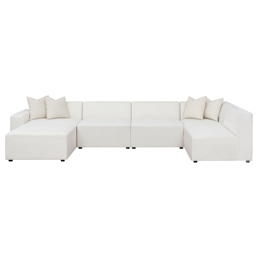 Create an elegant, contemporary entertainment area with this sophisticated six-piece sectional set, upholstered in an easy-to-clean pearl performan...