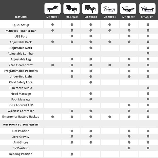 For ultimate versatility, our 300 Series are your best options! The Somnerside collection is constructed with top quality materials, with some of the most sought-after features in adjustable bed bases. It comes in multiple sizes with removable legs to fit most kinds of beds. Note: Feature sets may vary on different models and sizes.