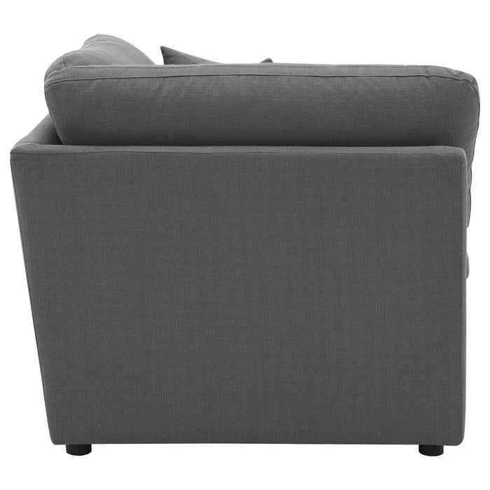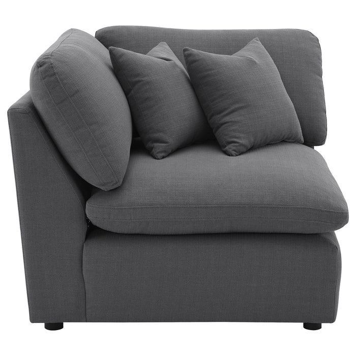 Relax on the cushioned comfort of this well-designed corner for the den or living room. Upholstered in linen-like, it's crafted with a plush seat and back for long-lasting comfort. It also features tailored handsome topstitching. You'll also love that the treated fabric easily repels water and moisture so you can quickly wipe up spills before they soak in. It's the perfect corner to add to any modular sectional.
